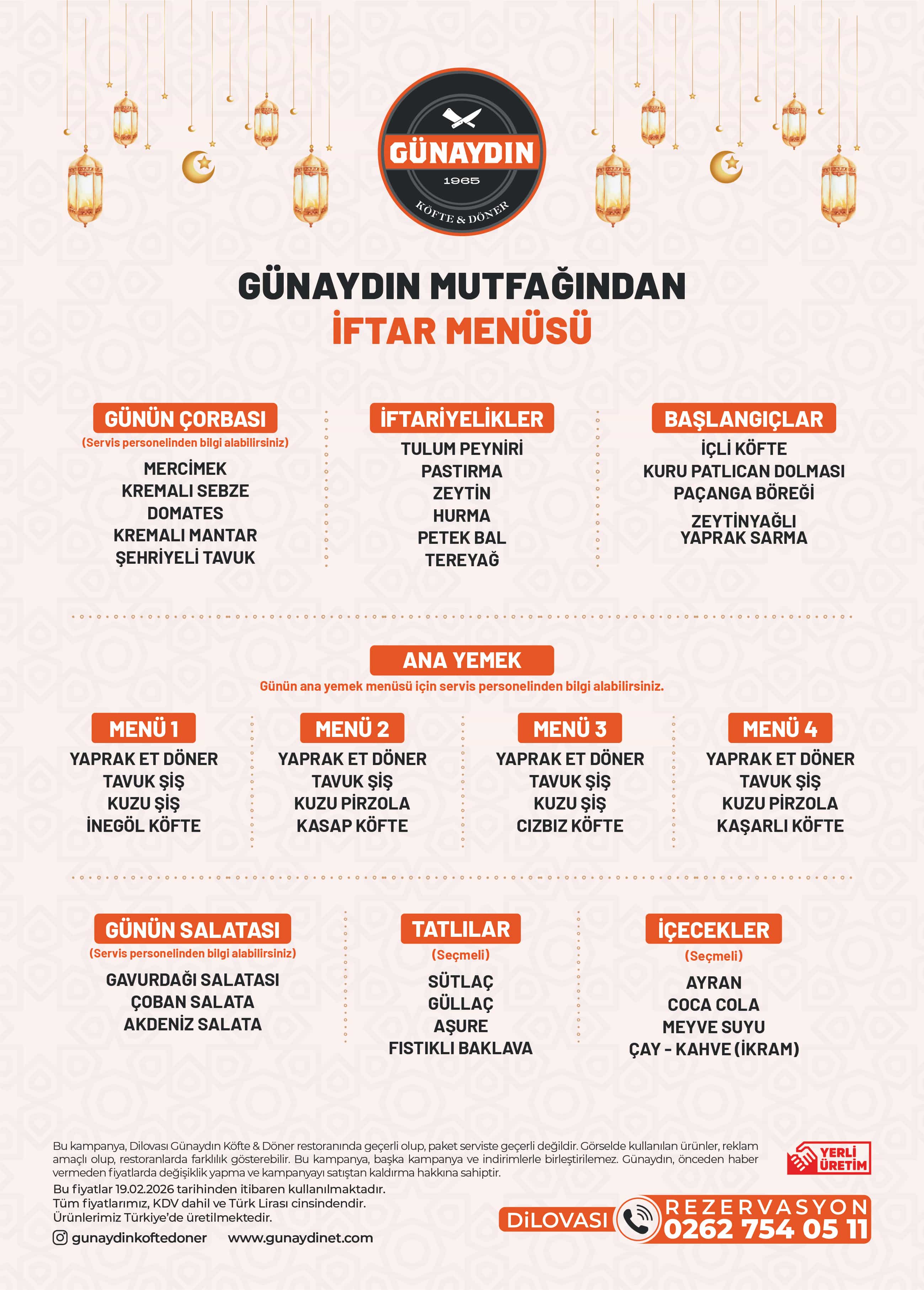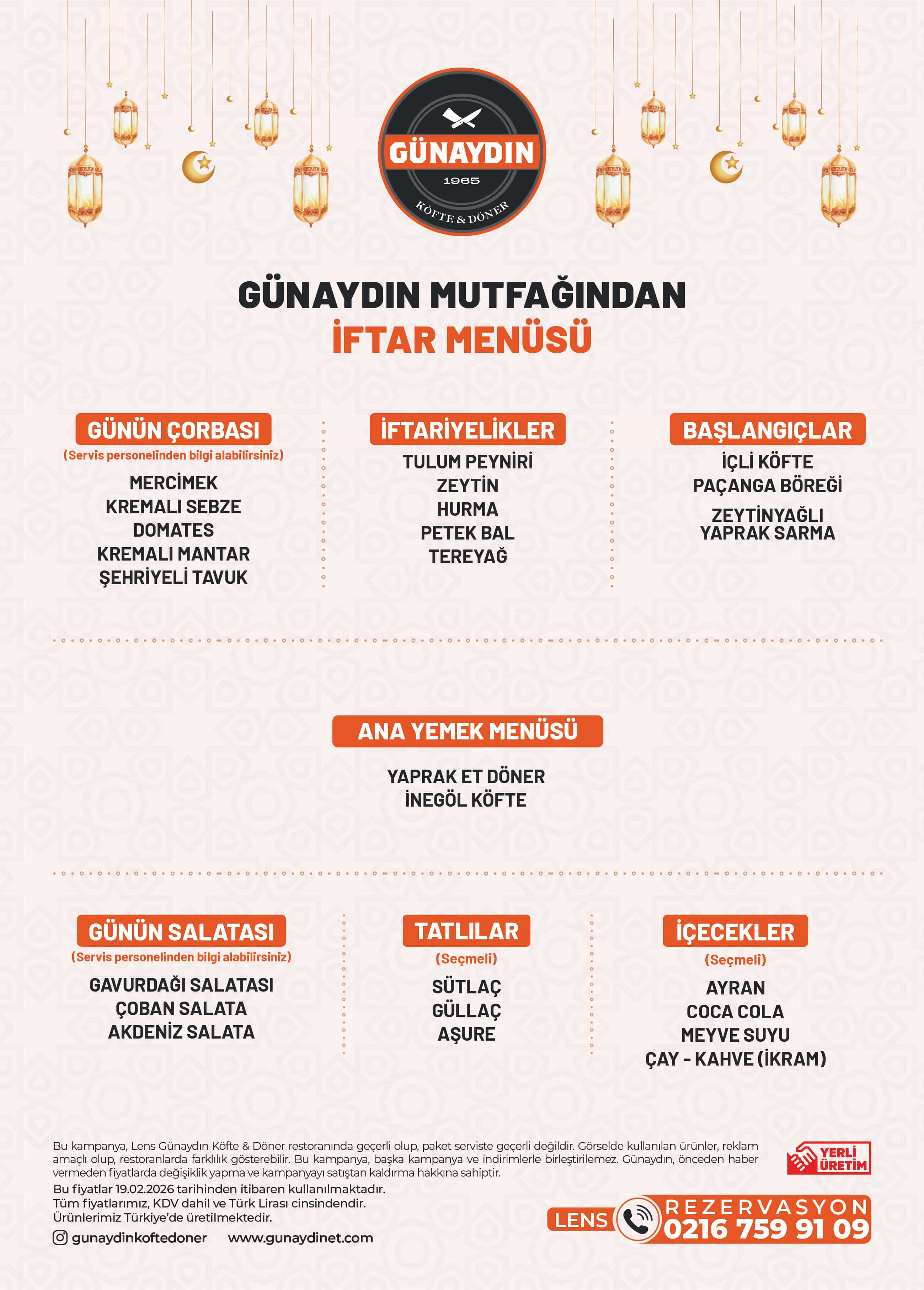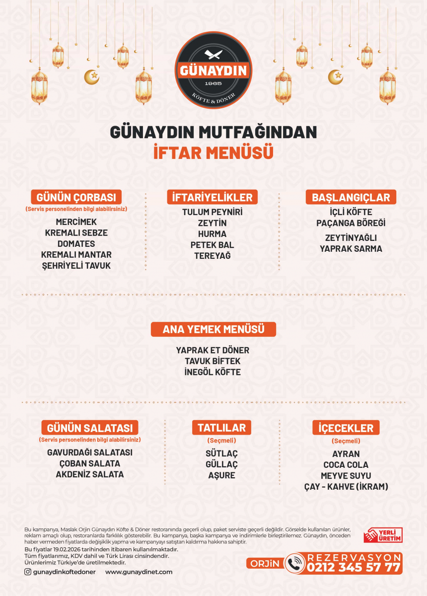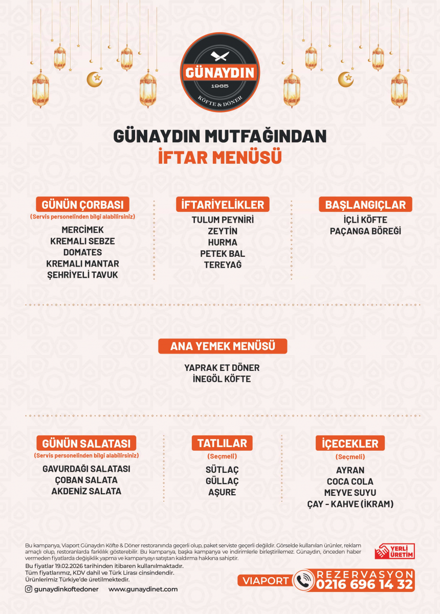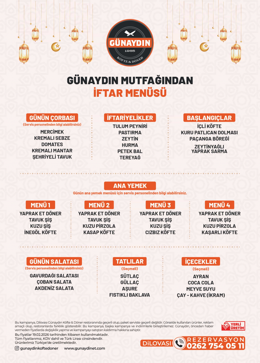 To experience the blessings of Ramadan and the joy of sharing together, we at Günaydın Köfte & Döner have prepared special Ramadan iftar menus at our selected branches.